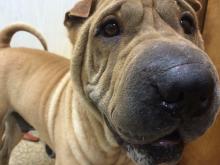 After months of living on the streets of West Virginia and eluding Animal control, Dave was lured in by a fellow shar-pei owner. He currently has trust issues from being on his own for so long. We have him in boarding at the vet clinic, where the owner works magic with these types of dogs. Dave is able to stay in the office of the clinic, so that Dave can see people come and go all day and get used to them. He is also attending a weekly obedience class. Dave has already bonded with the staff member that takes him to class, and has made progress with others as well. Dave is now fully vetted and neutered. He is described as a gentleman, and a dream on the leash. He is walked almost daily by different volunteers, so he is used to a lot of people.